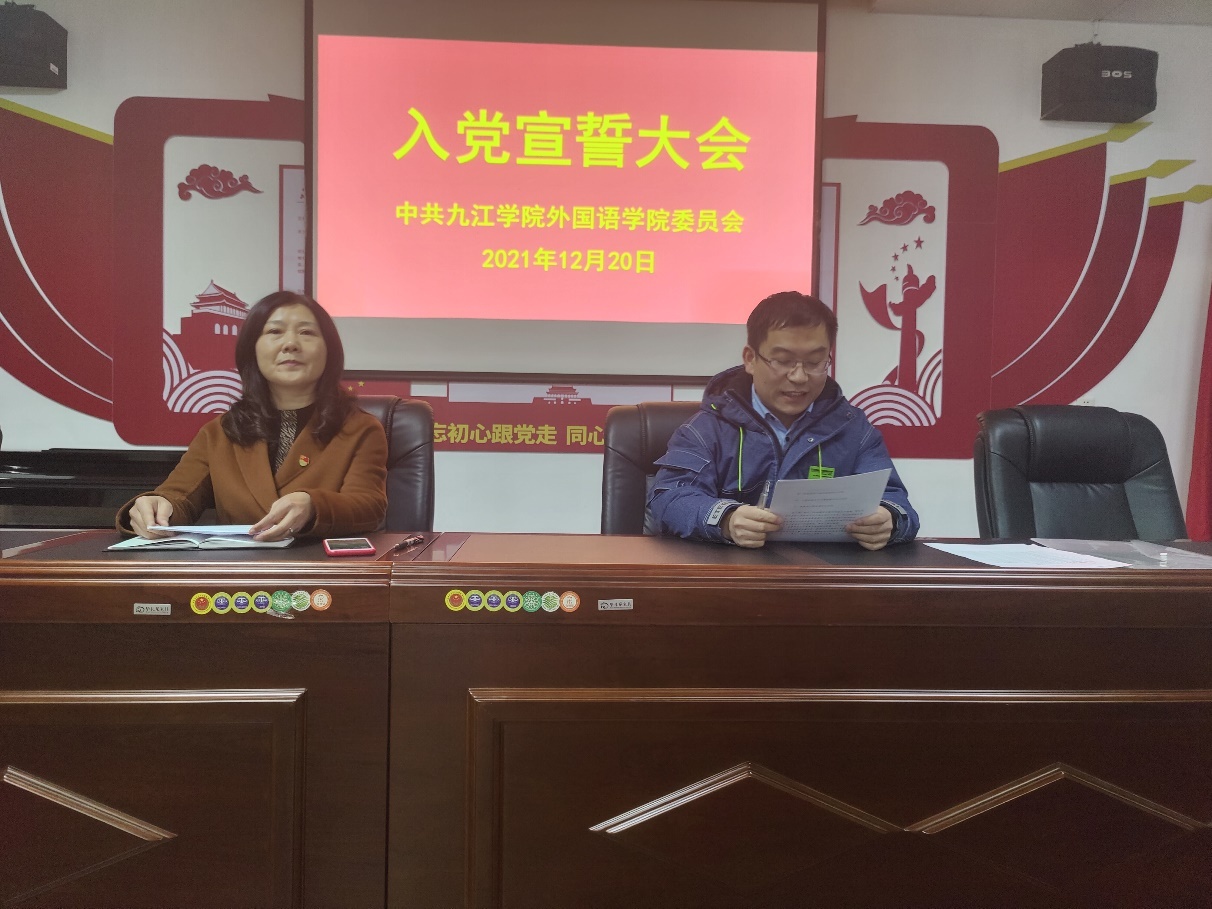 12月20日15:30,中共tyc86太阳集团委员会在香远楼315召开入党宣誓大会,党委书记罗其娟出席,本期20名预备党员和4名入党积极分子参加。大会由学生科副科长王少斌主持。