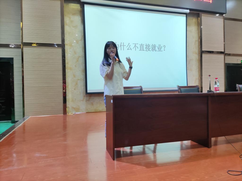 本学院两位名校年轻教师周燕平和郭思霈分别对英语笔译和出国留学进行分享交流。两位老师着重强调了英语备考过程和复习方法,同时详细说明了留学申请的途径及必备条件,这些宝贵的学习经验都有利于同学们的规划和发展。最后周志高院长上台发言,鼓励同学们积极考研,努力认真的追逐梦想,并代表学院各位老师,寄托了对考研同学的期待与信心。